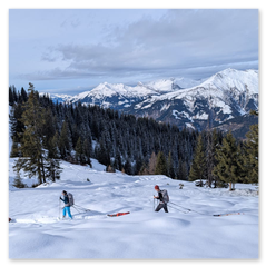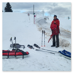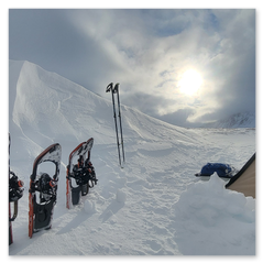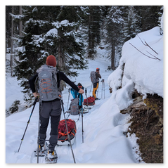 - Ausrüstung (Schneeschuhe, Stöcke, LVS-Set)