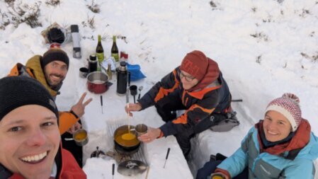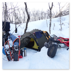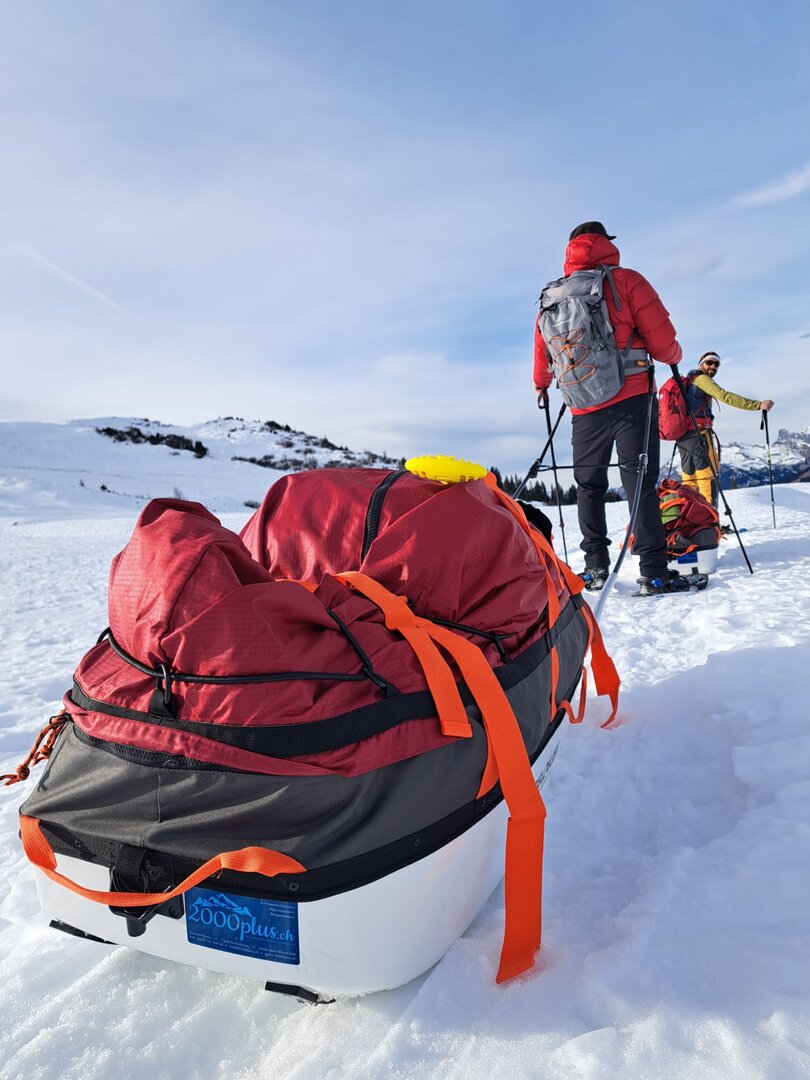 - Rucksack, Pulka, Zelt, Verpflegung (Abendessen und Frühstück)