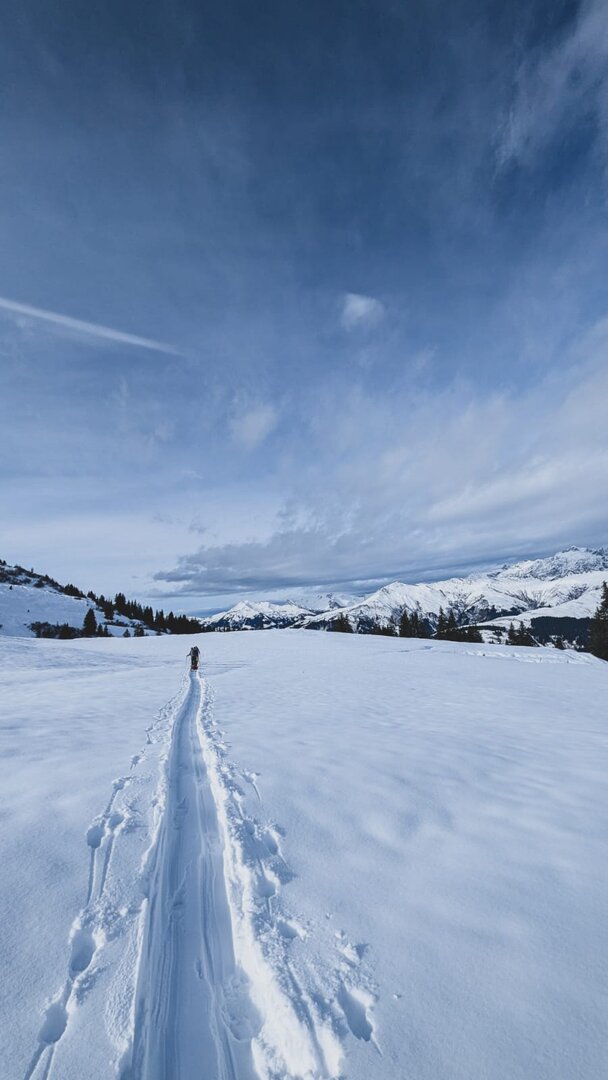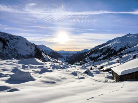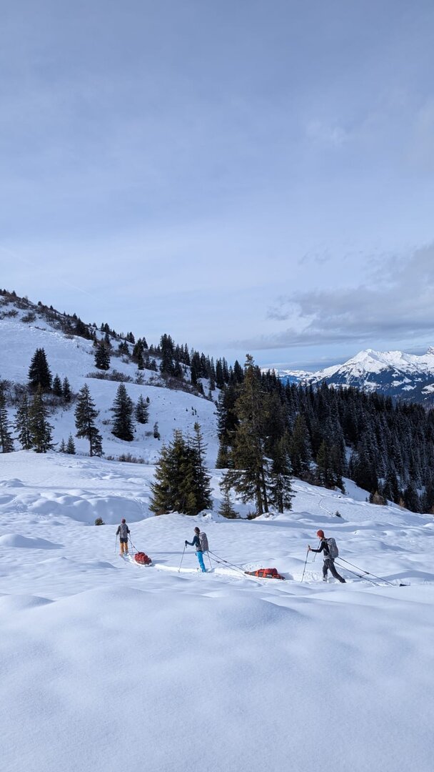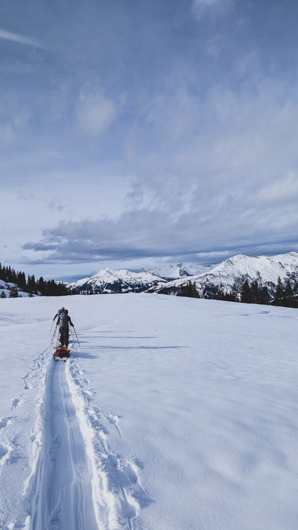 Erlebe mit 2000plus.ch dein einzigartiges Winterabenteuer in der Bergwelt von Graubünden im Prättigau. Ausgerüstet mit allem was es braucht um autark in tiefwinterlicher Landschaft unterwegs zu sein, tauchen wir in die stille Bergwelt von St. Antönien, hinter dem Mond links ein.