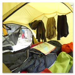 Wind- und wasserabweisende Jacke und Hose, warmer Fleece oder Pullover, Bergschuhe (Moonboots sind ungeeignet !), 2 Paar Handschuhe, Mütze, Sonnenbrille, Sonnencreme ev. Gamaschen, gefüllte Thermoflasche, Lunch für 2 Tage, 2te trockene Garnitur. Warme Kleider zum Schlafen, Thermounterwäsche und Wollsocken, Taschenlampe, Toilettenartikel, Isomatte und warmer Schlafsack, evtl. zusätzlich Innenschlafsack (Matte und Schlafsack können bei Transa gemietet werden).